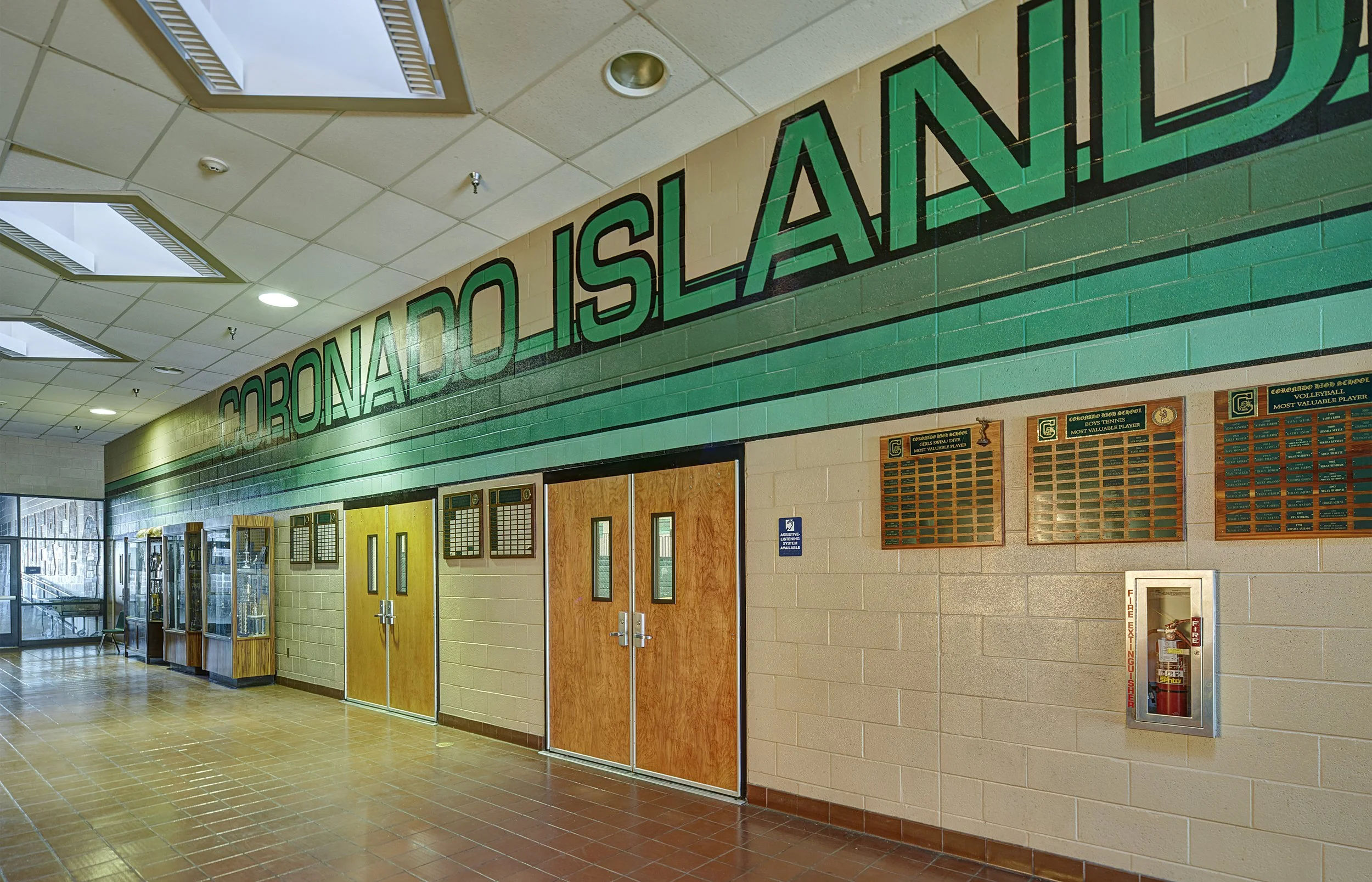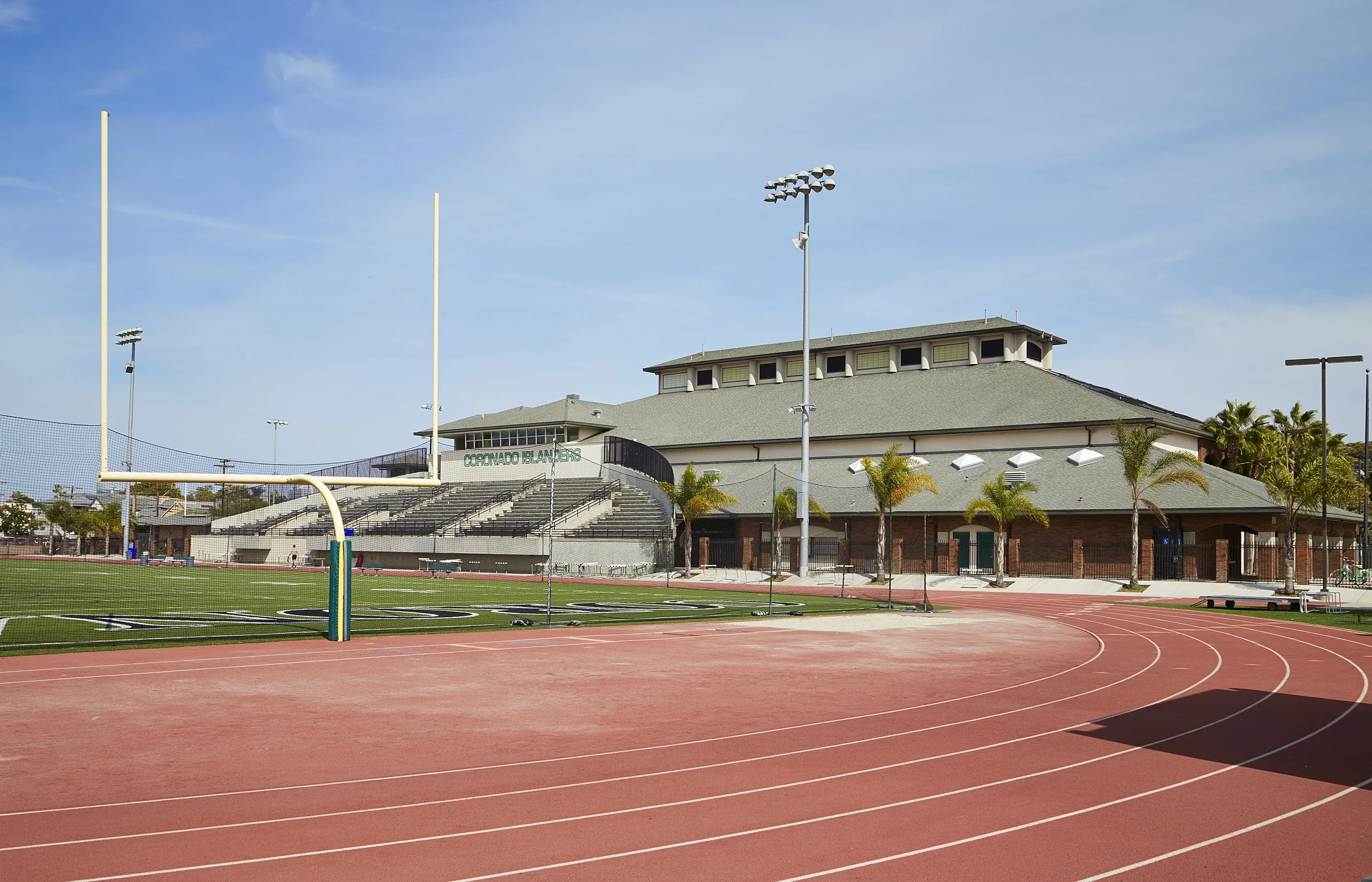 The Blumenthal Sports Complex for Coronado Middle and Senior High Schools, designed in association with SHW Group Architects, Dallas, TX, was our first K-12 school project. This 48,000 SF multi-level athletic center comprises both competition and auxiliary gymnasiums, training facilities, physical education and athletic program administrative spaces, and a new track and field, complete with a cast-in-place concrete stadium, seating 1500.