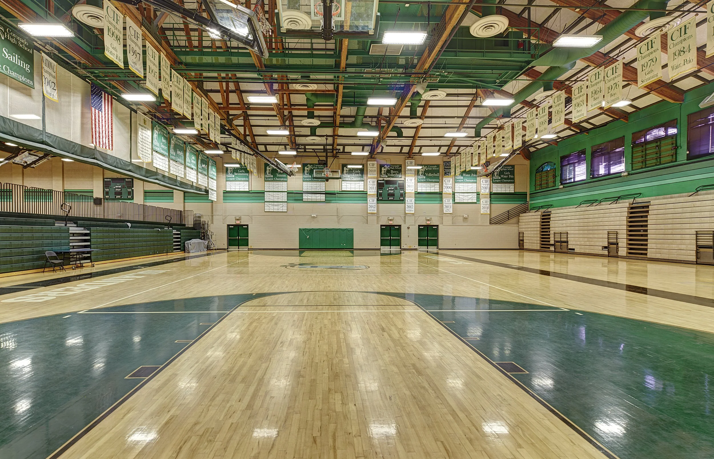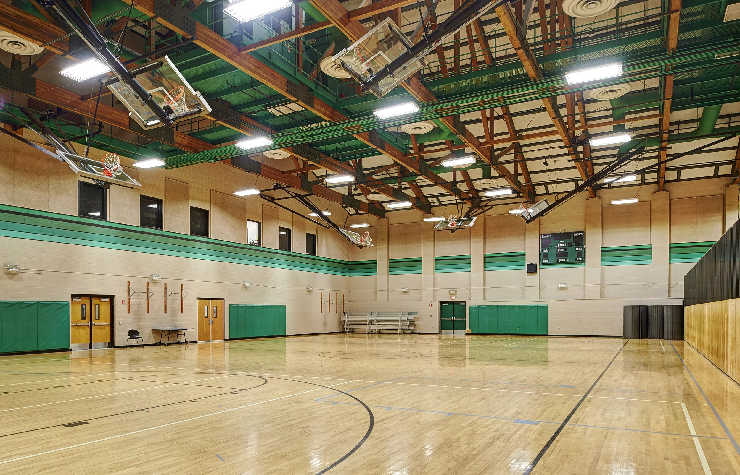 Designed in a very tight urban site, the seating bowl is enveloped by the gymnasium and concourse structure. The facility was dedicated in 1995, and with its distinctive hip roof, clerestory windows, and large wood trusses reminiscent of traditional field houses, the sports complex has been a source of pride for the community ever since.