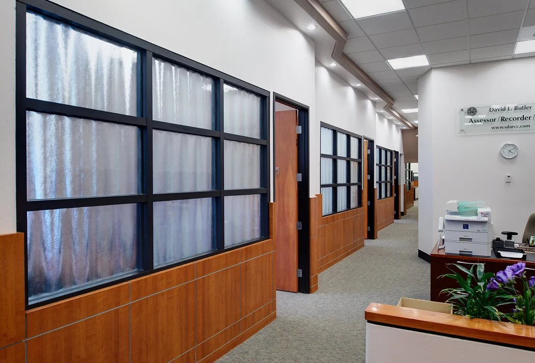 We have provided services on a variety of small to medium sized County projects for Health and Human Services, the Polinsky Children's Center, South County Animal Shelter, and County Superior Courts for the County of San Diego, Department of General Services. Our primary commission has been the renovation of numerous interior spaces in the historic County Administration Center (CAC). These tasks have ranged in area from 300 to over 20,000 SF, in use from mail processing to the supervisor's Board Chambers, and complexity from an HVAC retrofit to a new cafeteria and total over 100,000 SF. Although the use of each space varies greatly, the common objective of each renovation is to modernize functionality, and improve the aesthetic environment, while respecting the heritage of the building.