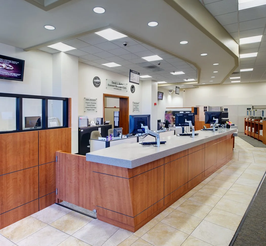 Completed projects include the Auditor and Controller office, Cafeteria, Clerk of the Board office, Human Resources office, Mail Processing, two Supervisor's offices, and three Treasurer-Tax Collector offices. In addition to basic architectural deign and engineering services, we also have provided programming, space planning and systems furniture layout and design for each of the projects.