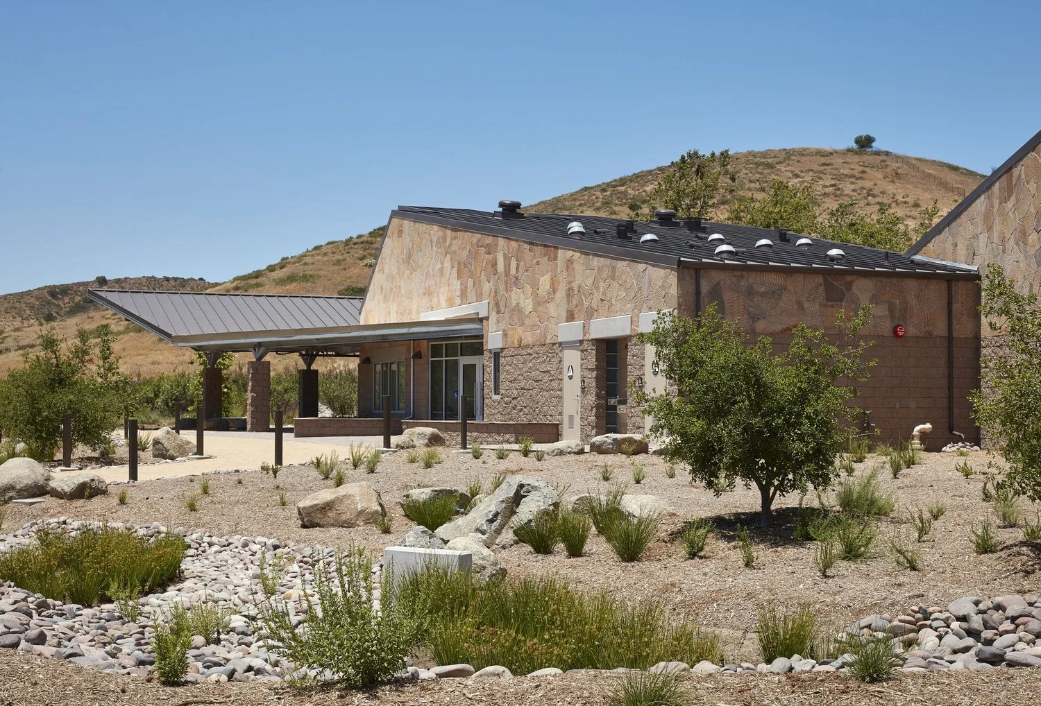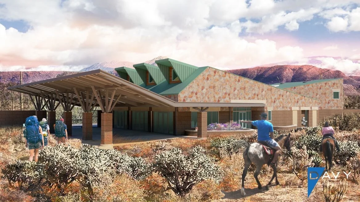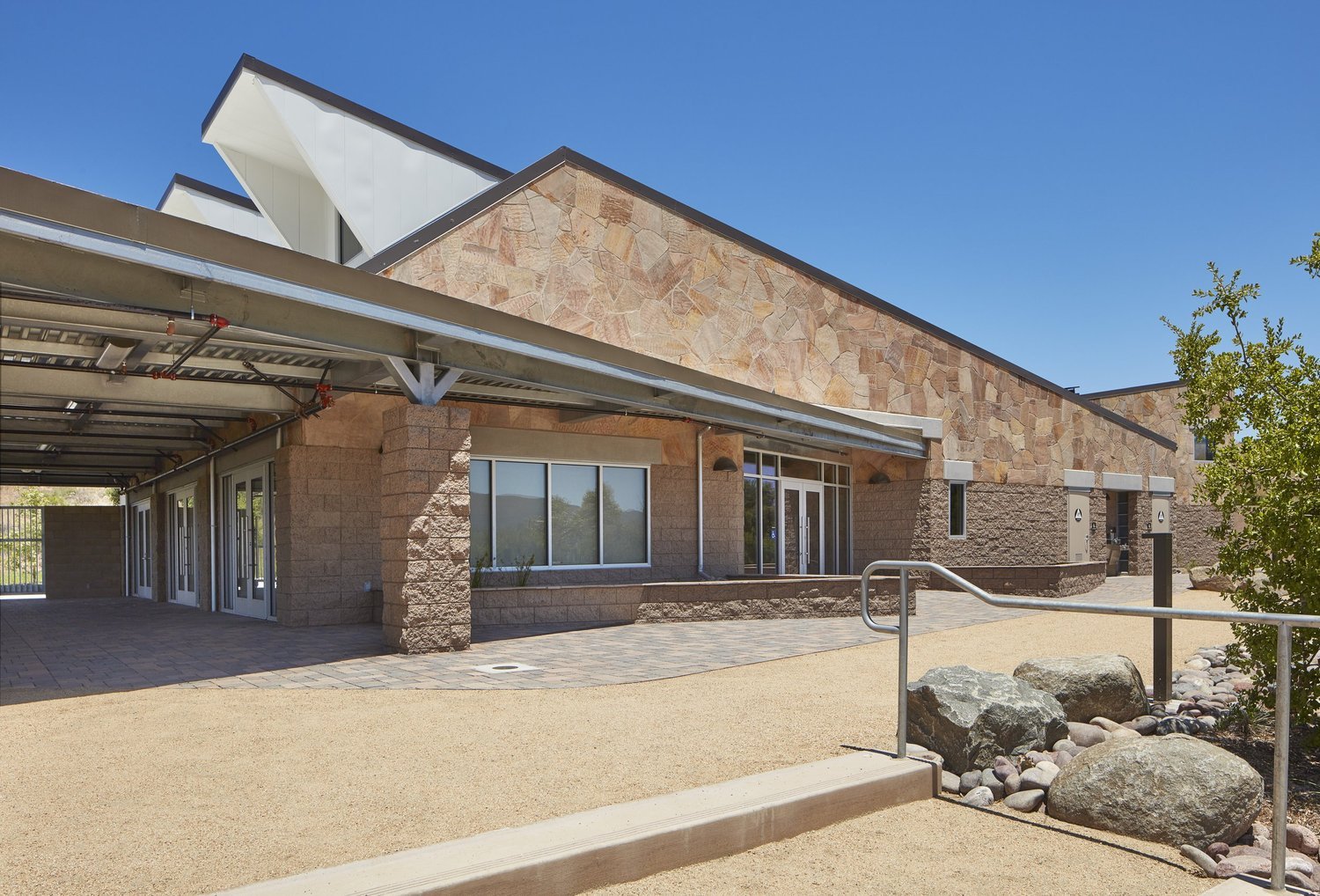 Davy Architecture was commissioned by the City of San Diego to provide services through design and construction for the Mission Trails Ranger Station within the Mission Trails Regional Park. Located within an existing 12-acre, multi-use staging area and accessible within the city’s Regional Park by horse riders, hikers and bicyclists. The 5,000 SF station consists of masonry and steel construction to include flag stone veneer applied to the exterior. The facility also houses the park’s maintenance facility, park rangers’ offices, a conference room, a display room with information counter, a park staff restroom with shower, a garage, a kitchenette, public restrooms, a storage room, a covered group picnic shelter attached to the West side, and a screened storage yard attached to the East side.