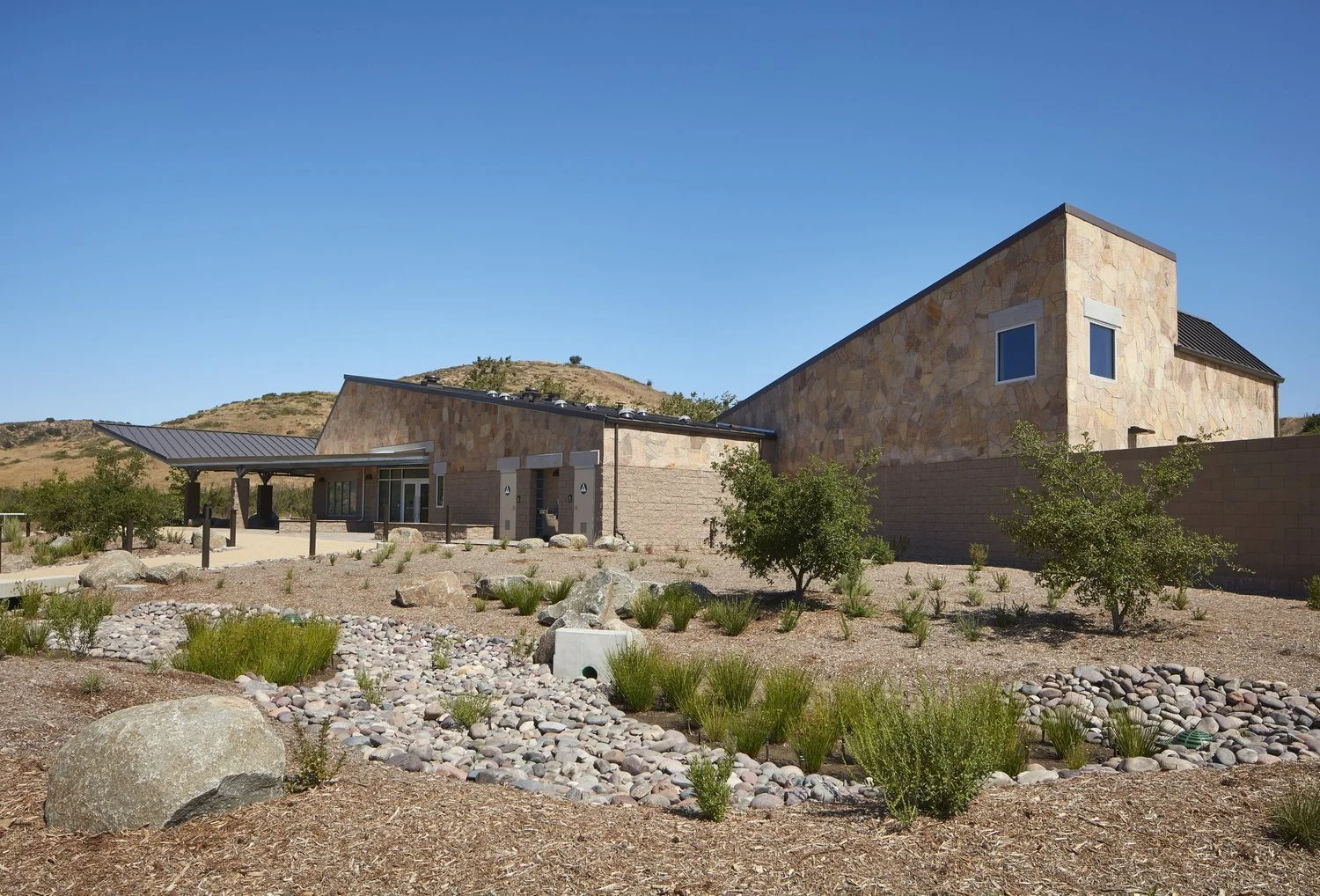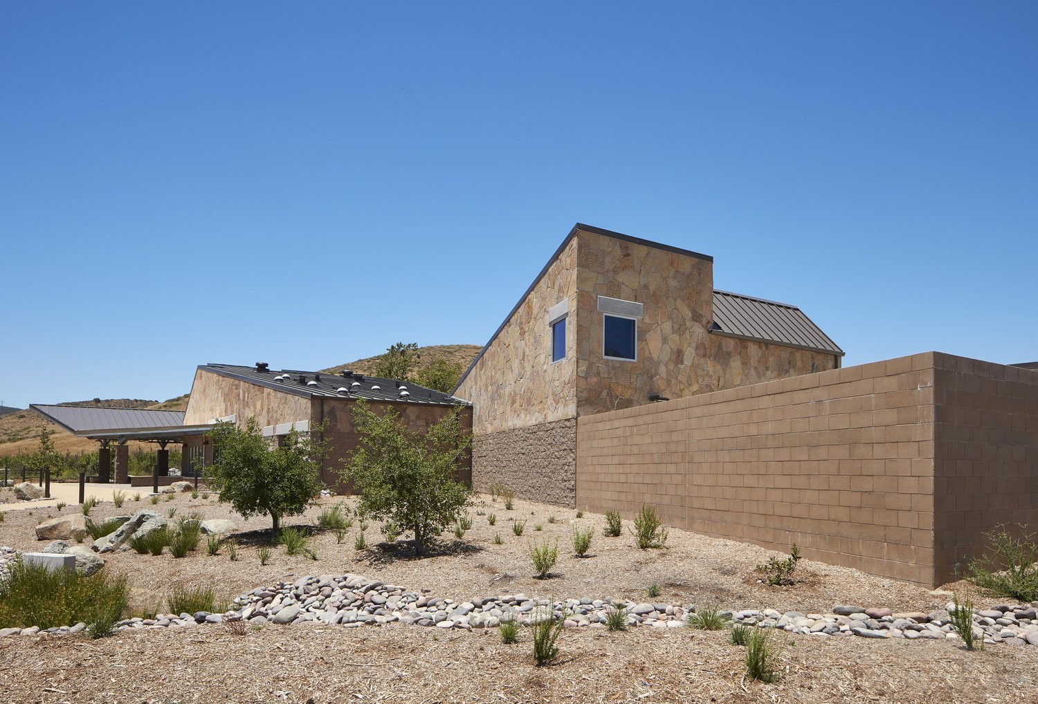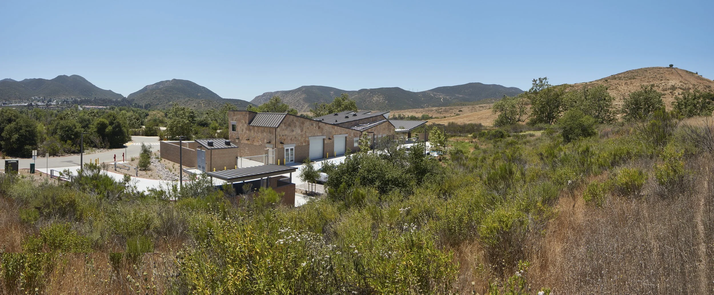 Davy Architecture was commissioned by the City of San Diego to provide services through design and construction for the Mission Trails Ranger Station within the Mission Trails Regional Park. Located within an existing 12-acre, multi-use staging area and accessible within the city’s Regional Park by horse riders, hikers and bicyclists. The 5,000 SF station consists of masonry and steel construction to include flag stone veneer applied to the exterior. The facility also houses the park’s maintenance facility, park rangers’ offices, a conference room, a display room with information counter, a park staff restroom with shower, a garage, a kitchenette, public restrooms, a storage room, a covered group picnic shelter attached to the West side, and a screened storage yard attached to the East side.