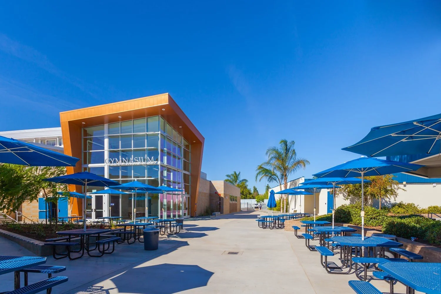 In addition to the new gymnasium, Davy Architecture led a campus-wide modernization process. Updates included a water-wise landscape and irrigation system, tennis court and locker room renovations, pool deck replacement, and lighting upgrades, as well as the design and installation of a new active solar hot-water system. The outdoor basketball courts were removed and replaced. Existing classrooms received duct work upgrades, new roofing, and the addition of natural daylighting to a currently window-less facility.