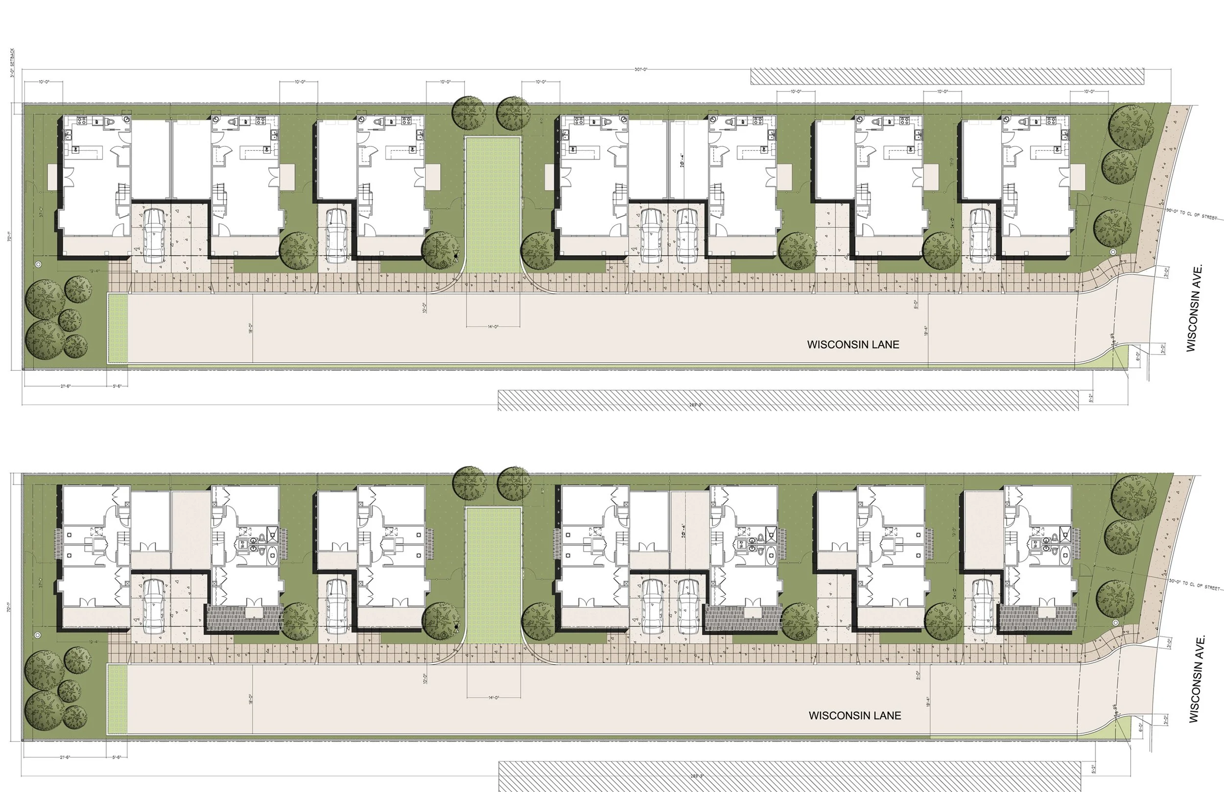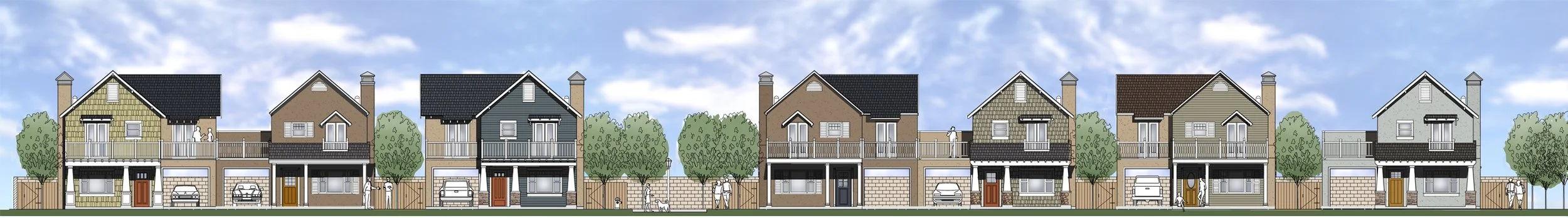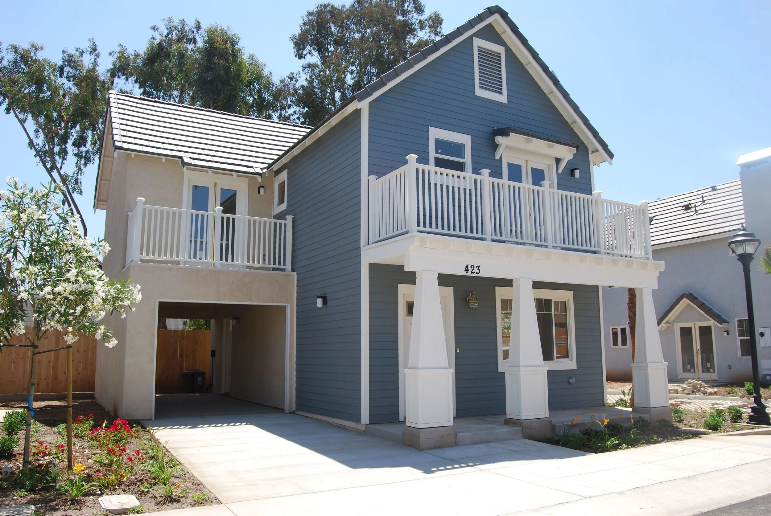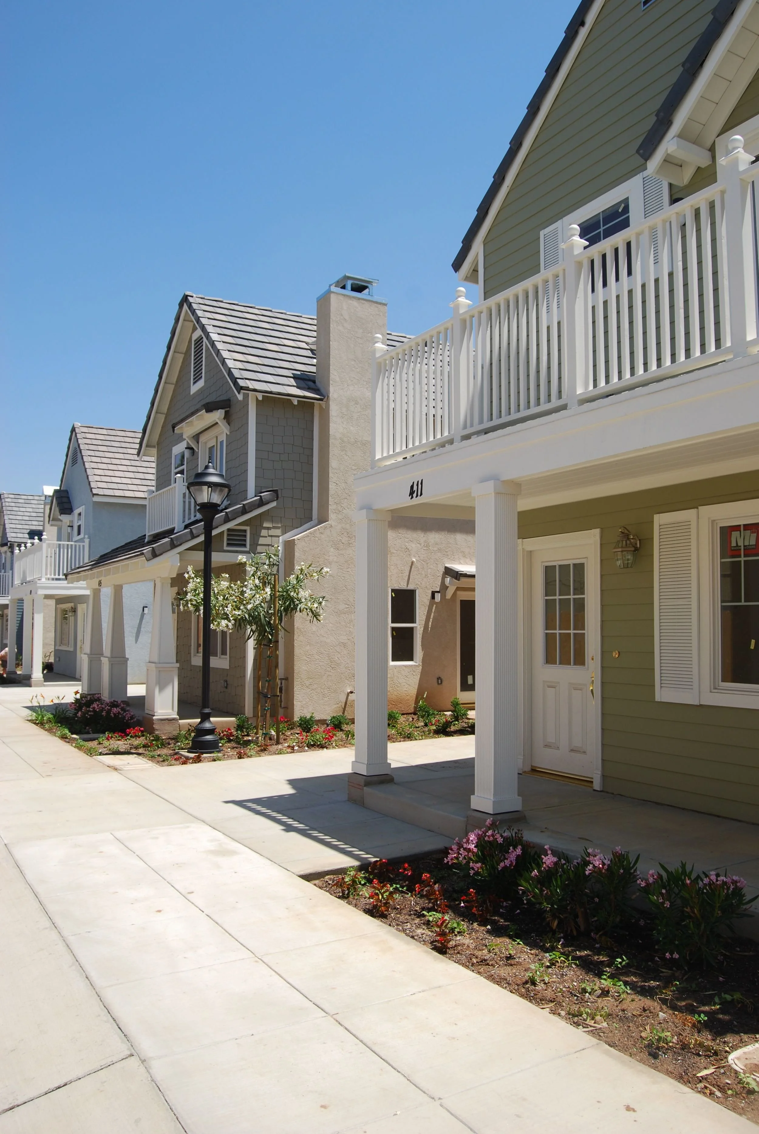 Conceived as an affordable "back to the future" project, these seven small detached single-family, two-story homes average just 1,300 SF each, clustered on 2,000 SF lots. The El Cajon Community Corporation sponsored this pilot project of Craftsman and Colonial style cottages, each with front porches, balconies, and single carports. The homes include two or three bedrooms, with two and half bathrooms, living and dining rooms, and kitchens complete with walk-in pantries.